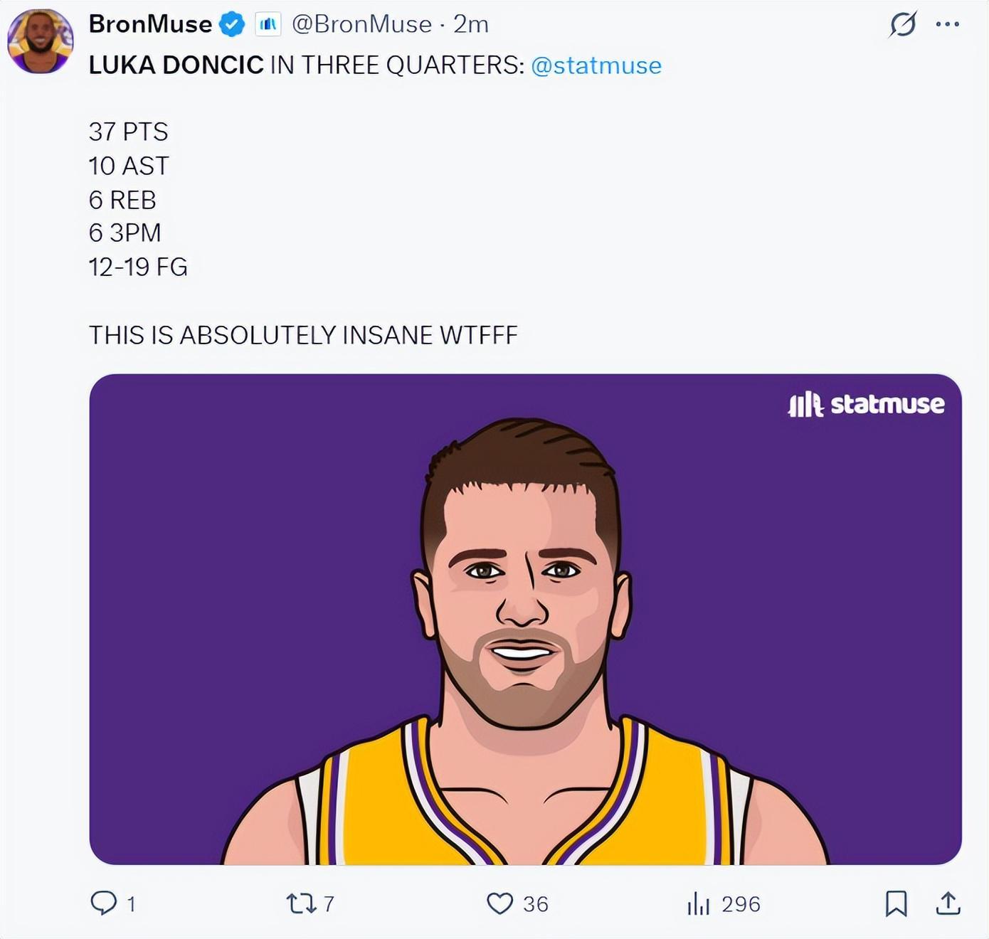 全场比赛,东契奇38分钟,25中15,三分14中8,罚球12中8,拿到46分11助攻7篮板,这场比赛东契奇太疯狂了。
