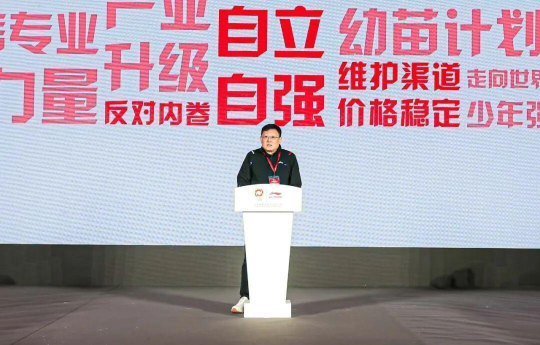 中国羽毛球协会副主席曹勇在致辞中表示,李宁作为中国羽毛球协会长期战略合作伙伴,多年来持续助力中国羽毛球事业发展,展现了民族品牌的责任与担当。他提到,李宁在业余赛事体系建设上的持续投入,为丰富群众体育生活、拓宽后备人才选拔渠道发挥了积极作用。未来,中国羽毛球协会期待继续与李宁深化合作,共同书写中国羽毛球事业新篇章。